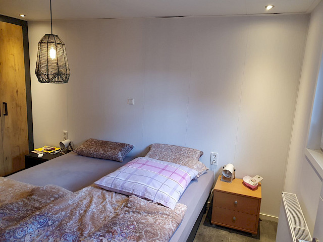 Hinter der Küche befindet sich ein kleines Schlafzimmer mit einem Einzelbett, er passt eventuel auch ein zweites Bett rein, oder er kann als Stauraum oder Arbeitsraum dienen.