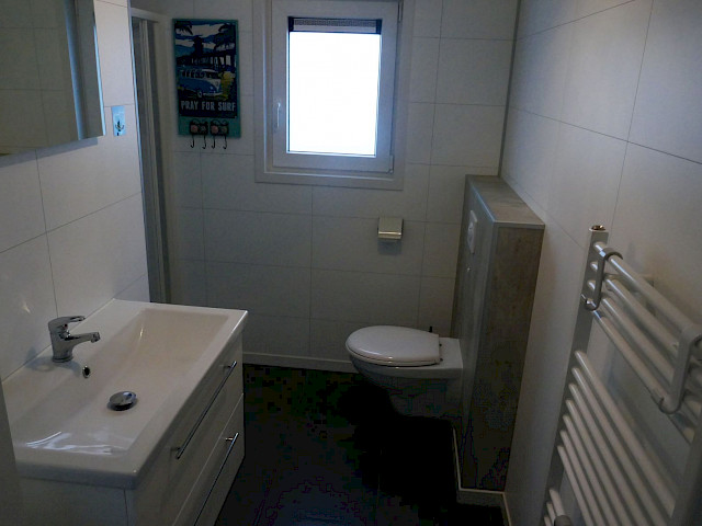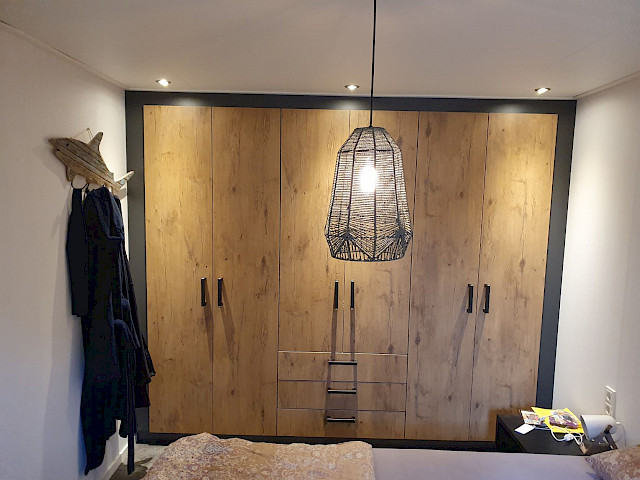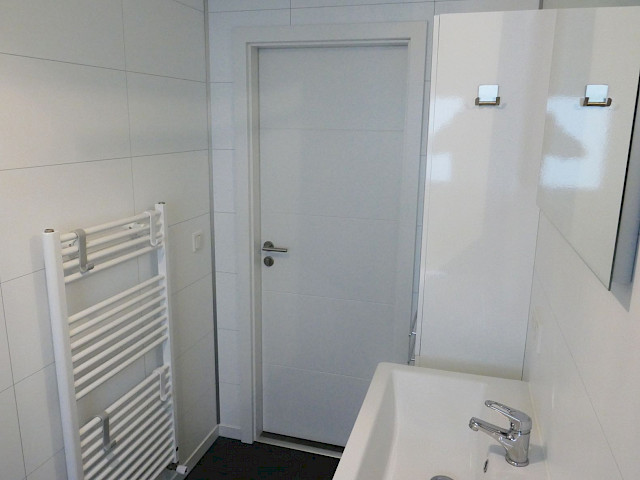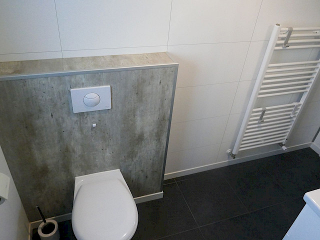 Im kurzen Teil des Chalets befindet sich das Hauptschlafzimmer mit einem schönen Kleiderschrank. Angrenzend befindet sich ein schönes geräumiges Badezimmer mit großer Dusche und Toilette.