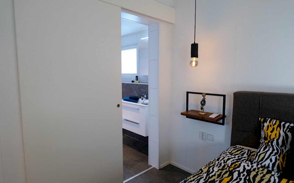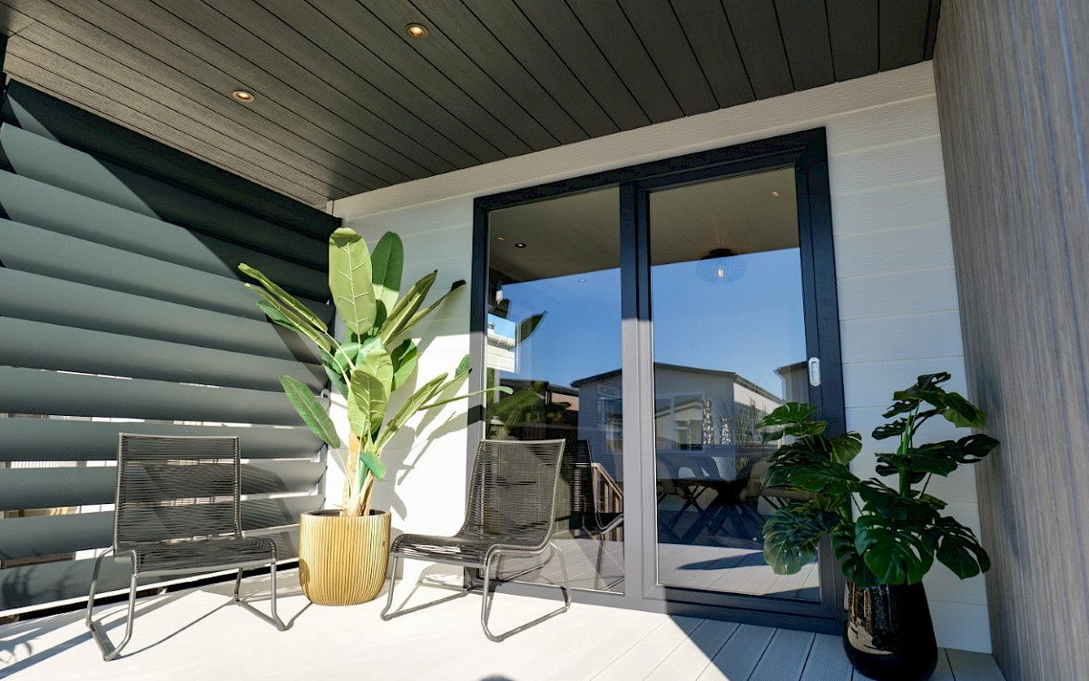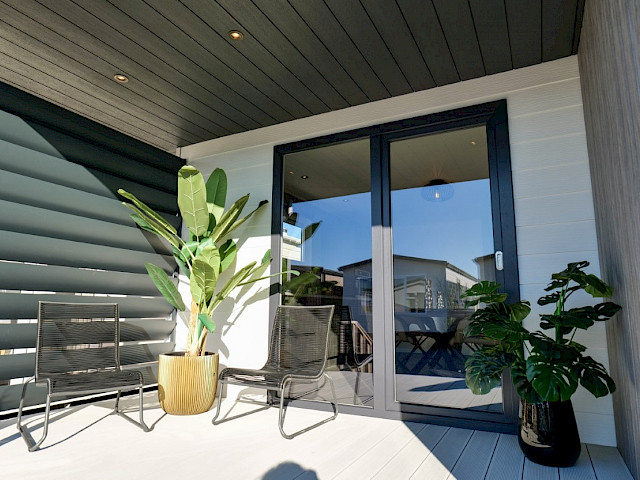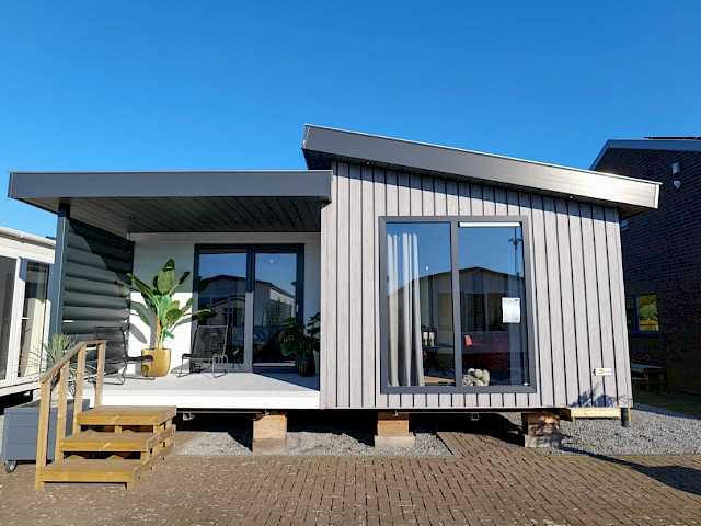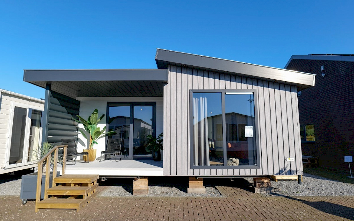 Die neue Lodge MZ besteht, wie die Capri Twin, aus zwei Teilen. Charakteristisch für die MZ Lodge ist ihr einzigartiger Grundriss und die schöne integrierte Veranda mit schwarzen Lamellen. Dank der intelligenten Anordnung werden verschiedene Ruinen geschaffen, die eine optimale Privatsphäre garantieren. Aufgrund der großzügigen Flächen und der intelligenten Grundrisse eignet sich die PK MZ Lodge auch hervorragend als Wohnung für Pflegekräfte.