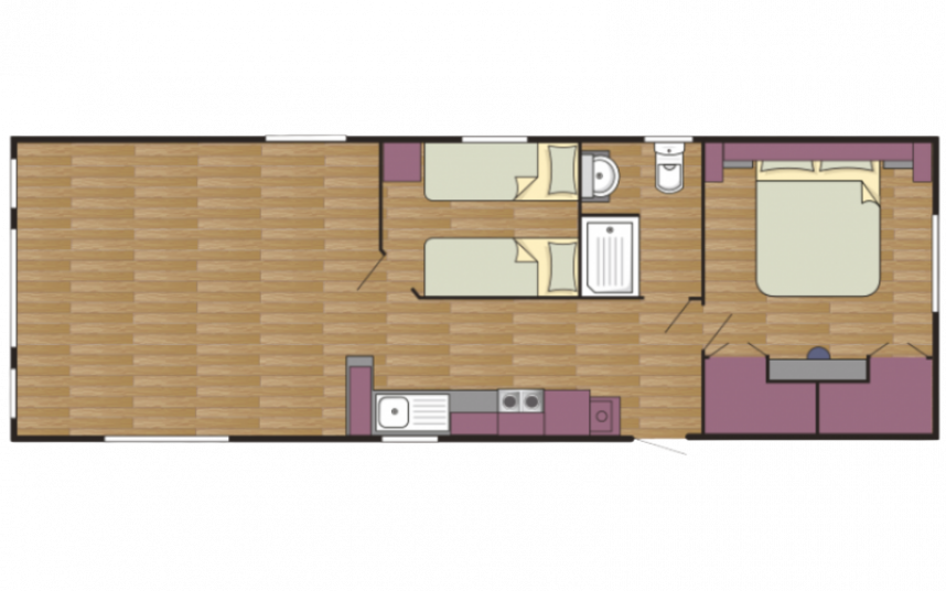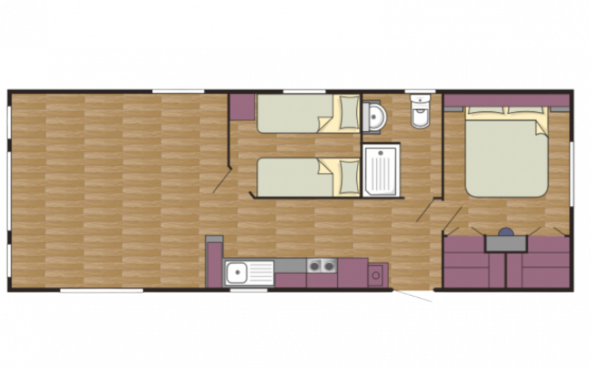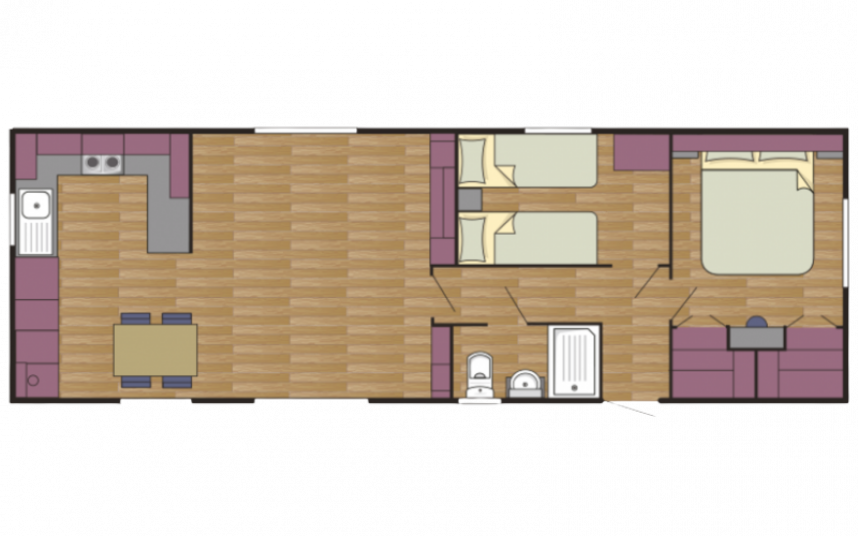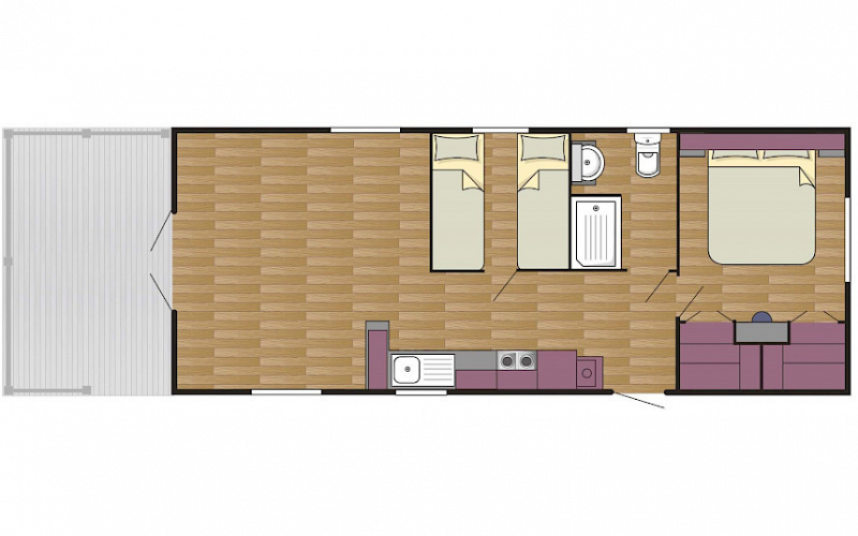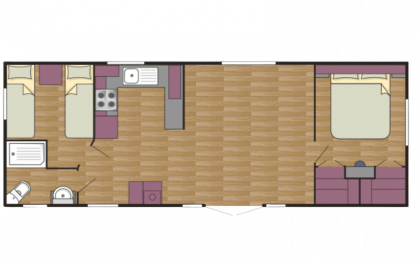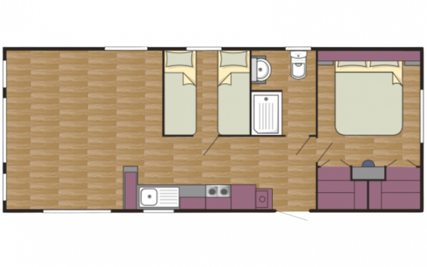 Auf den obigen Bildern ist folgendes Modell zu sehen: 1100 x 400 super FEB – 2 Schlafzimmer.