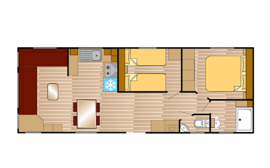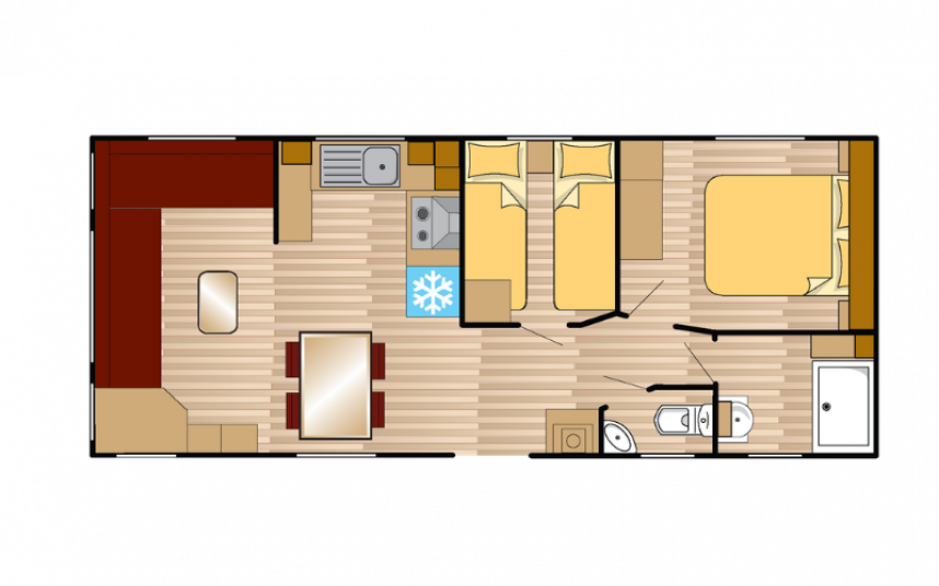 Auf den obigen Abbildungen ist folgendes Modell dargestellt: 1100 x 370 – 2 Schlafzimmer.