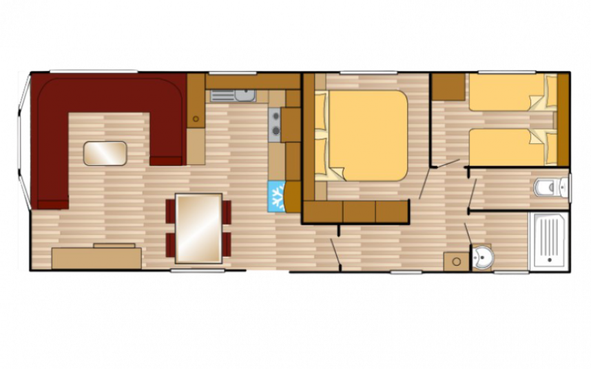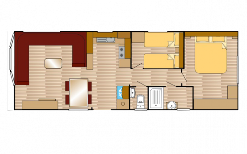 Auf den obigen Abbildungen ist folgendes Modell dargestellt: 900 x 370 super special - 2 Schlafzimmer
