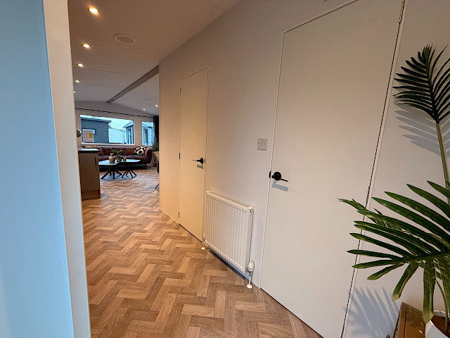 Der Innenraum ist komplett mit einem modernen Vinyl-Fischgrätenboden ausgestattet. Das sieht nicht nur stilvoll aus, sondern ist auch pflegeleicht.