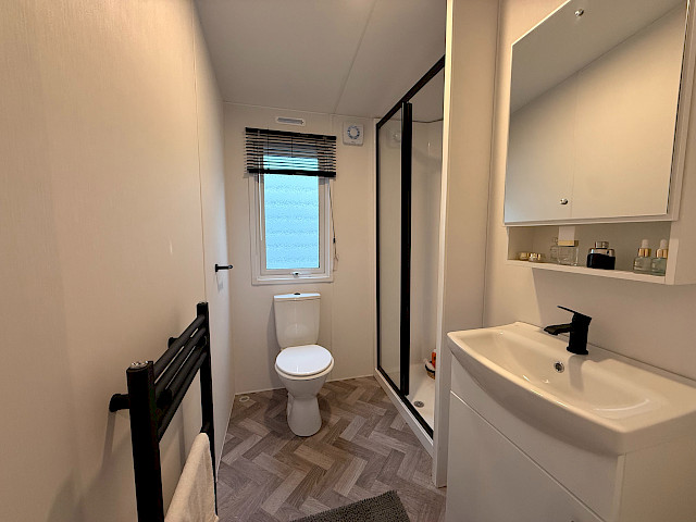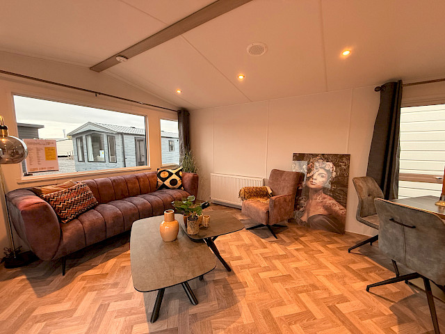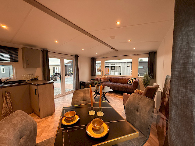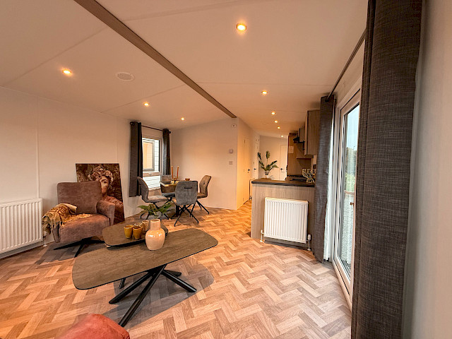 Dieses wunderschöne Mobilheim empfängt Sie mit einem geräumigen Eingangsbereich, in dem Sie Ihre Jacken und Taschen bequem aufhängen können. Der großzügige Eingangsbereich vermittelt sofort ein Gefühl von Geräumigkeit und Gastfreundschaft, sodass Sie sich sofort wie zu Hause fühlen.