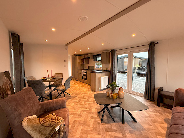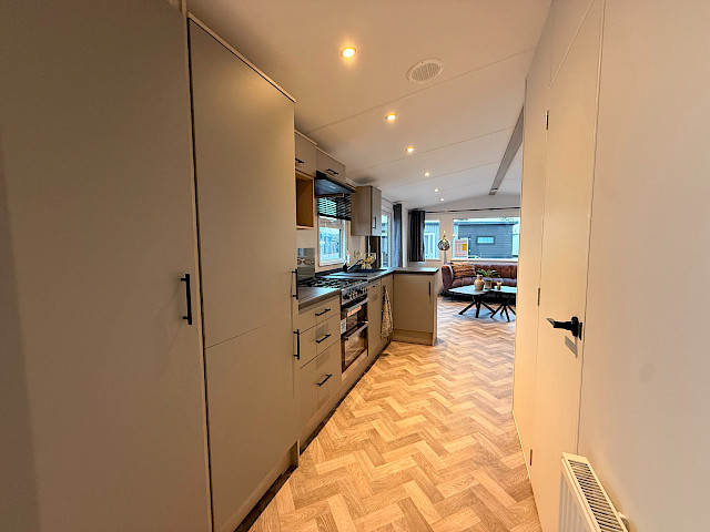 Der Ocean Super Plus ist mit einer modernen U-förmigen Küche ausgestattet, komplett mit Herd, Dunstabzugshaube, eingebautem Kühlschrank und Gefrierschrank. Es gibt sogar Platz für eine Mikrowelle und Sie haben die Möglichkeit, einen Geschirrspüler aufzustellen, sodass Sie mit allem Komfort ausgestattet sind.