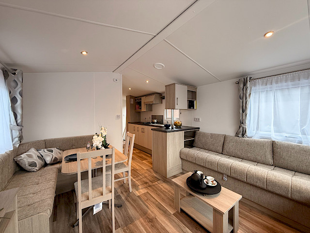 Der Siëra ist ein stilvolles und charakteristisches Ferienhaus mit einem attraktiven Erscheinungsbild aufgrund der einzigartigen Form des Erkers an der Vorderseite des Mobilheims. Darüber hinaus verfügt der Siëra über viele Standardoptionen wie ein komplett eingerichtetes Wohnzimmer, eine komplette Küche und eine luxuriöse Außenfassade. Die Siëra eignet sich für einen perfekten Urlaub mit der ganzen Familie. Standardmäßig verfügt die Siera über eine Truma-Heizung im Wohnzimmer. Dieses Modell ist mit einer Zentralheizung ausgestattet (optional).