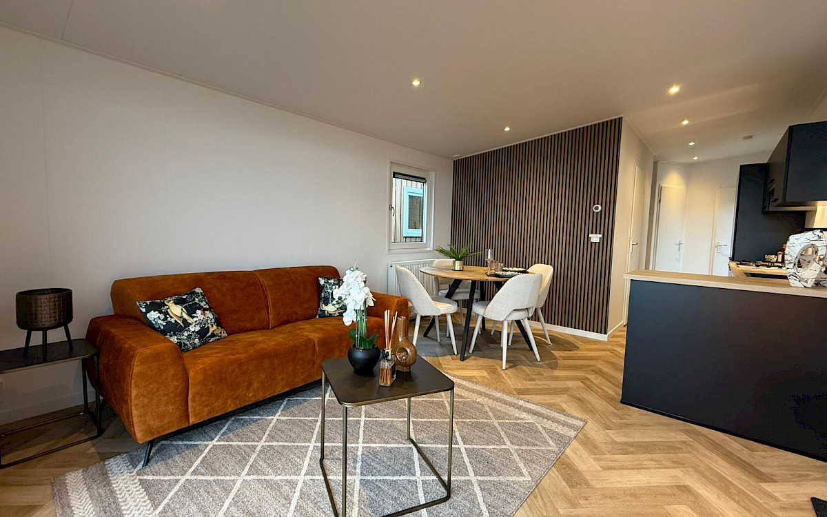 Träumen Sie von einem eigenen Platz in einem wunderschönen Ferienpark, ohne viel Aufwand? Dann entscheiden Sie sich für das Volente Deluxe 1100/2 im Ferienpark De Boomgaard – ein Chalet inklusive Stellplatz, das sofort bezugsfertig ist.