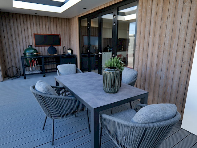 Der MZ Next Level ist ein superisoliertes Modell mit einer Grundfläche von 100 m2 und einer zusätzlichen überdachten Terrasse mit automatischer Lattenkonstruktion von 30 m2. Von außen sehen Sie eine gewachste, vertikal angebrachte Holzverkleidung und schwarze Aluminiumfensterrahmen. Im Inneren sind die Räume aufgeteilt in Wohn-/Esszimmer, Schlafzimmer, Abstellraum/Technikraum, Bad und separates WC. Dieses Modell kann ab 199950 als Rohbau realisiert und mit unzähligen Optionen, Möglichkeiten und Wahlmöglichkeiten erweitert werden. Denken Sie an verschiedene Arten von Oberflächen, individuelle Innenausstattung, Fußbodenheizung und vieles mehr. Neugierig? Kommen Sie mit auf eine unvergessliche Tour und überzeugen Sie sich selbst von der Exklusivität unseres Chaletbaus.
