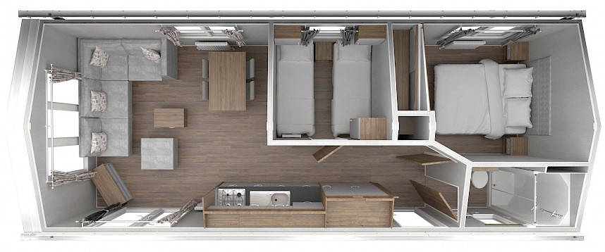 Unser Premium Chalet ist nach außergewöhnlichen Standards gebaut! Sie werden begeistert sein, wie solide sich das Premium Chalet anfühlt und wie luxuriös das Premium Chalet ausgestattet ist. Das Premium Chalet ist sehr gut isoliert und kann sowohl im Sommer als auch im Winter genutzt werden. Darüber hinaus ist das Premium Chalet serienmäßig mit den luxuriösesten Optionen ausgestattet, dies zeigt sich im Badezimmer, in der Küche und in den Schlafzimmern! Durch die großzügigen Abmessungen fühlt sich dieses Modell sehr geräumig an!