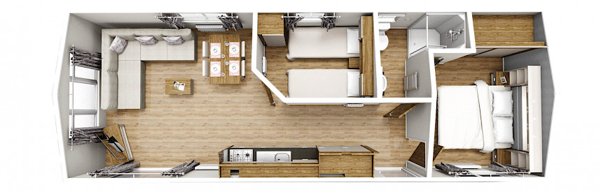 Unser Premium Chalet ist nach außergewöhnlichen Standards gebaut! Sie werden begeistert sein, wie solide sich das Premium Chalet anfühlt und wie luxuriös das Premium Chalet ausgestattet ist. Das Premium Chalet ist sehr gut isoliert und kann sowohl im Sommer als auch im Winter genutzt werden. Darüber hinaus ist das Premium Chalet serienmäßig mit den luxuriösesten Optionen ausgestattet, dies zeigt sich im Badezimmer, in der Küche und in den Schlafzimmern! Durch die großzügigen Abmessungen fühlt sich dieses Modell sehr geräumig an!