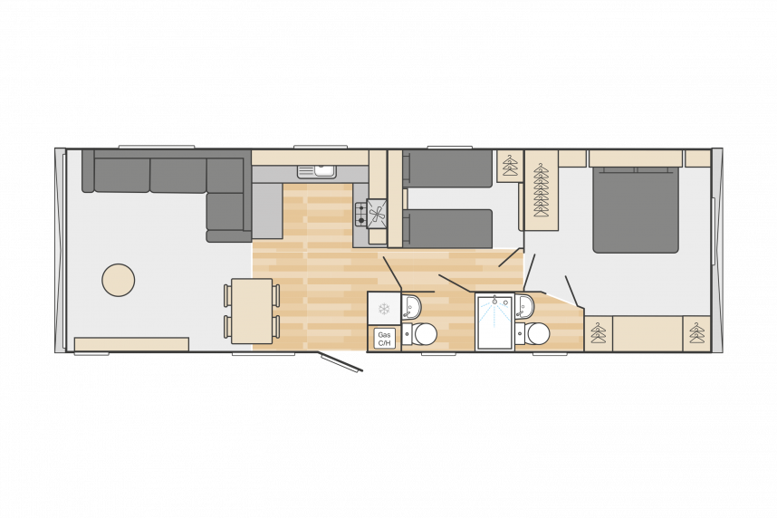 Die Swift Ardennes sind wirklich atemberaubend. Dieser Swift hat eine schöne U-Küche mit einem Luxusherd. Der Wohnbereich ist mit einem großen Ecksofa und einem elektrischen Kamin ausgestattet. Das große Schlafzimmer hat eine separate Toilette und 2 große Kleiderschränke.