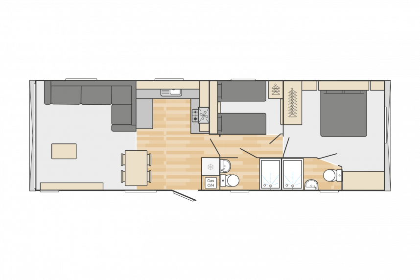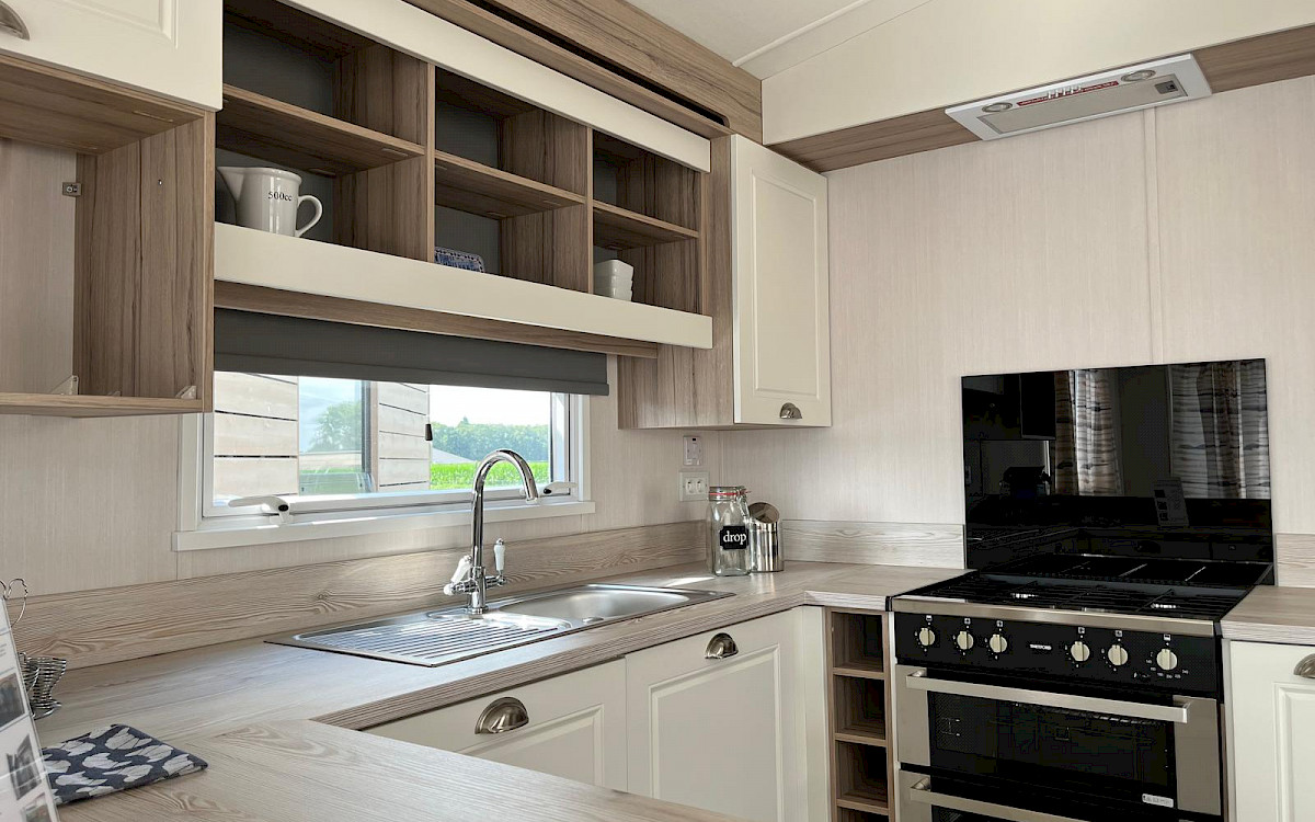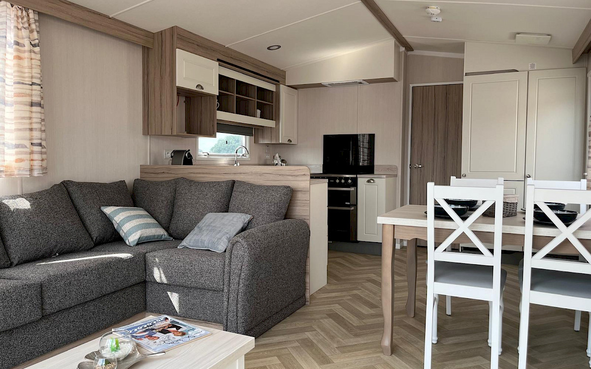 Die Swift Ardennes sind wirklich atemberaubend. Dieser Swift hat eine schöne U-Küche mit einem Luxusherd. Der Wohnbereich ist mit einem großen Ecksofa und is das model ausgestattet mit Zentral heizung. Das große Schlafzimmer hat eine separate Toilette und 2 große Kleiderschränke.