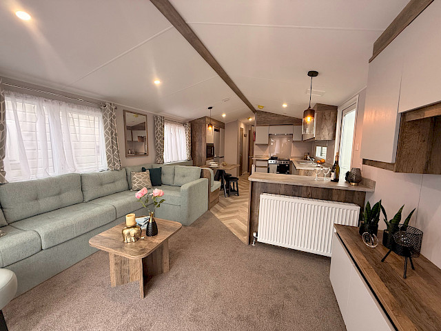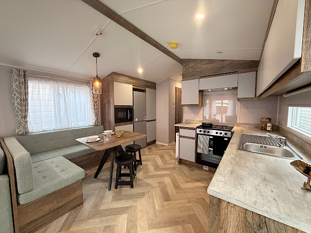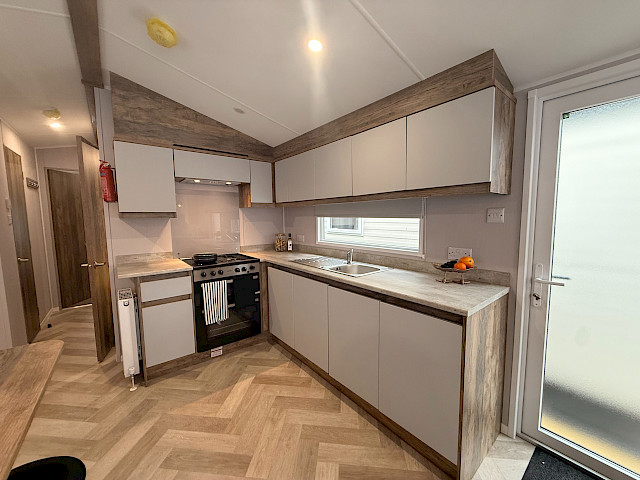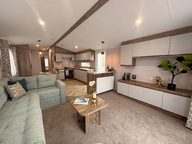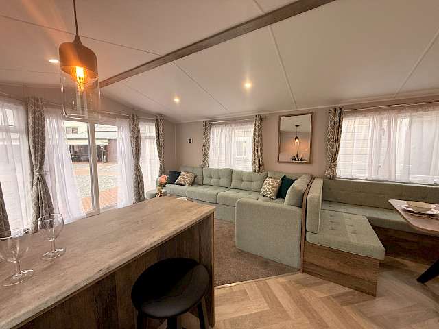 Das Willerby Brookwood ist einzigartig mit seinem großen, offenen Wohnbereich, dem stilvollen Barbereich und der luxuriösen, umweltfreundlichen Beleuchtung. Der luxuriöse Waschtisch, die eigene Toilette im Hauptschlafzimmer und der mit einem Backofen ausgestattete Kuche sorgen dafür, dass dieses Mobilheim über jeden Komfort verfügt. Der Willerby Brookwood ist der perfekte Ort zum Genießen.