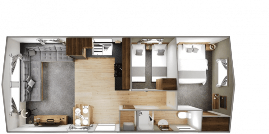 Das Ellerton wurde sorgfältig entworfen, um die verfügbare Bodenfläche optimal zu nutzen, sodass genügend Platz für die ganze Familie vorhanden ist. Die praktische L-förmige Küche bietet viel Platz zum gemeinsamen Kochen, während der offene Wohnbereich dafür sorgt, dass Sie immer mit Ihrer Familie oder Ihren Freunden in Kontakt bleiben. Die Schlafzimmer bieten alles, was Sie brauchen: ein bequemes Bett und genügend Stauraum für Kleidung und persönliche Gegenstände.