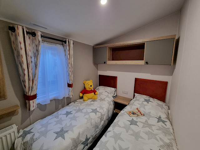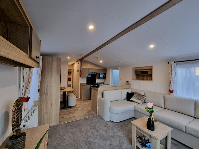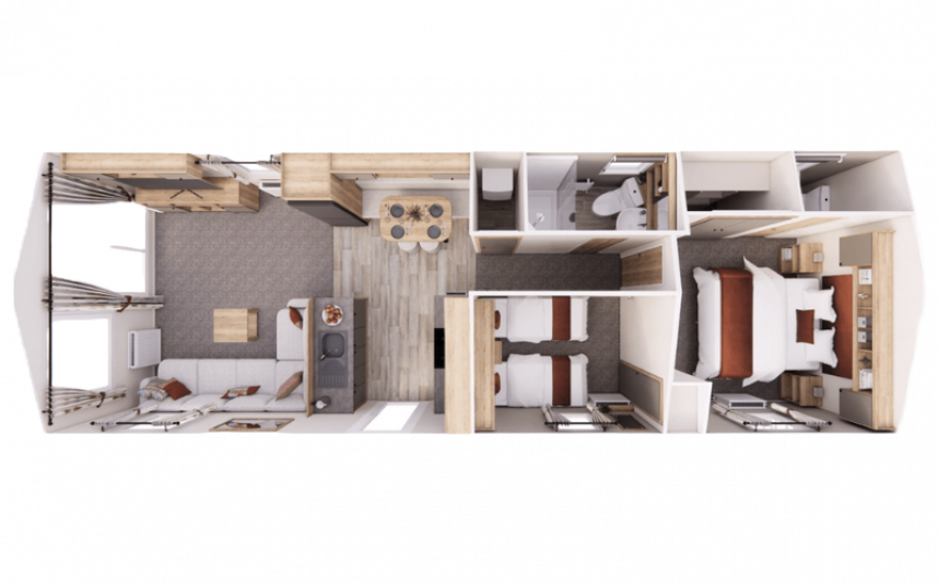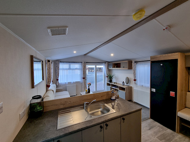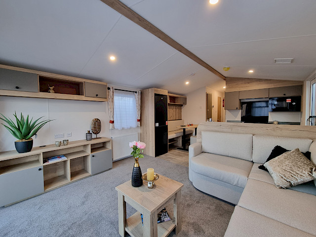 Der Willerby Rio ist ein modernes und stilvolles Mobilheim, das Komfort und Funktionalität perfekt vereint. Durch die durchdachte Raumaufteilung wirkt der Innenraum offen und einladend, mit einem hellen Wohnzimmer, einer großzügigen Eckcouch und großen Fenstern, die viel Tageslicht hereinlassen. Die Küche ist praktisch gestaltet, mit modernen Geräten und viel Stauraum, während der Essbereich ideal für gemütliche Momente mit Familie oder Freunden ist. In den zwei Schlafzimmern genießen Sie Ruhe und Komfort – das Hauptschlafzimmer bietet viel Stauraum, und das zweite Schlafzimmer eignet sich perfekt für Gäste oder Kinder. Der Willerby Rio ist die stilvolle und erschwingliche Lösung für alle, die ein entspanntes zweites Zuhause suchen.