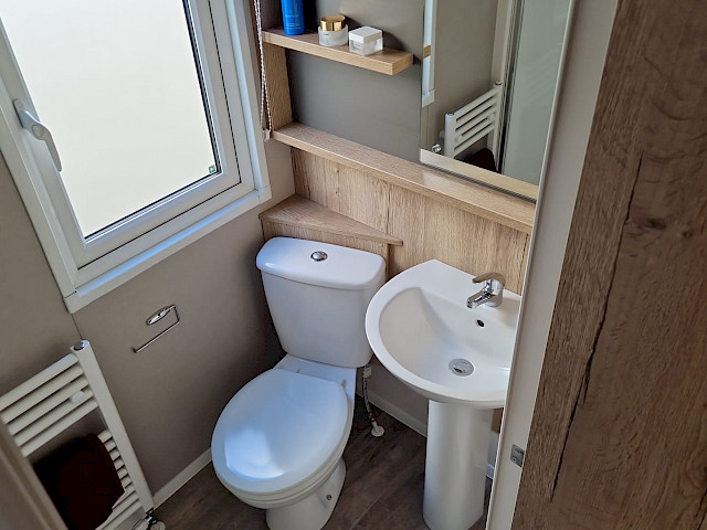 Der Willerby Rio ist ein modernes und stilvolles Mobilheim, das Komfort und Funktionalität perfekt vereint. Durch die durchdachte Raumaufteilung wirkt der Innenraum offen und einladend, mit einem hellen Wohnzimmer, einer großzügigen Eckcouch und großen Fenstern, die viel Tageslicht hereinlassen. Die Küche ist praktisch gestaltet, mit modernen Geräten und viel Stauraum, während der Essbereich ideal für gemütliche Momente mit Familie oder Freunden ist. In den zwei Schlafzimmern genießen Sie Ruhe und Komfort – das Hauptschlafzimmer bietet viel Stauraum, und das zweite Schlafzimmer eignet sich perfekt für Gäste oder Kinder. Der Willerby Rio ist die stilvolle und erschwingliche Lösung für alle, die ein entspanntes zweites Zuhause suchen.