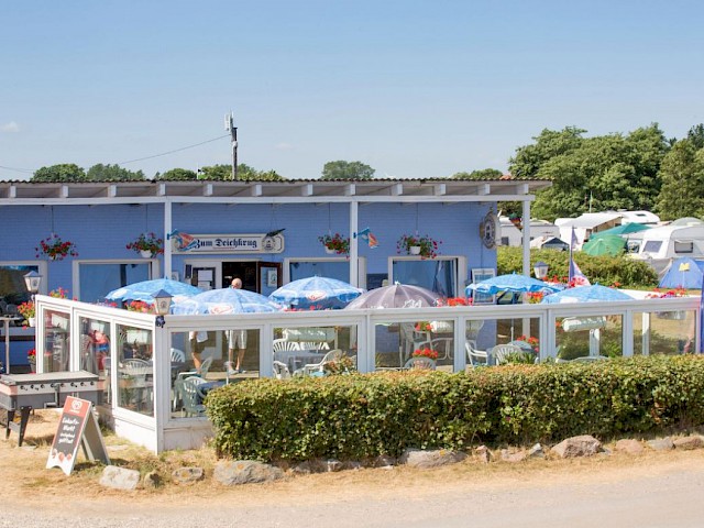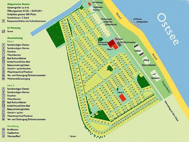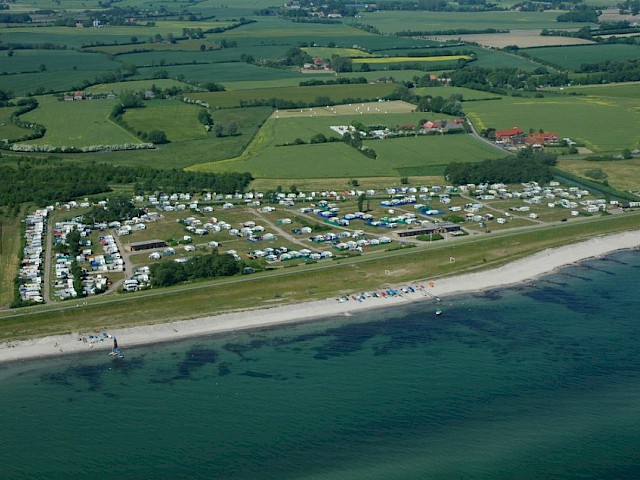 Ostseecamping Gut Oehe, der Platz mit dem Strand für die Rehe, schön geschützt durch den Ostseedeich, erstreckt sich über die Halbinsel Oehe-Maasholm.