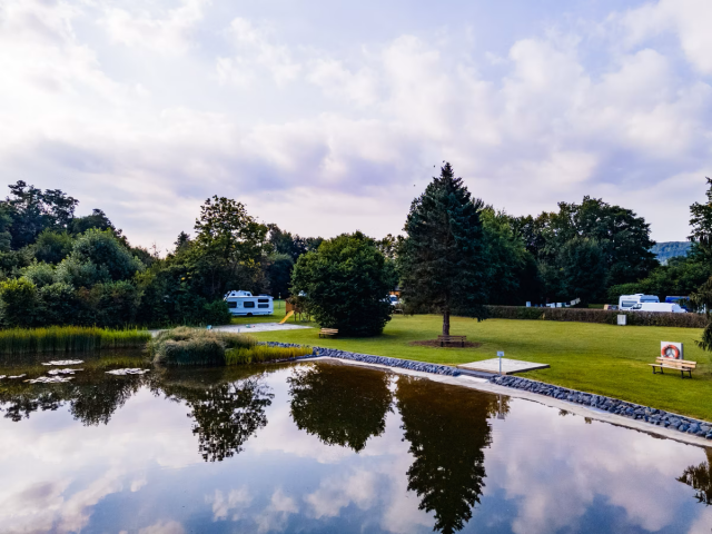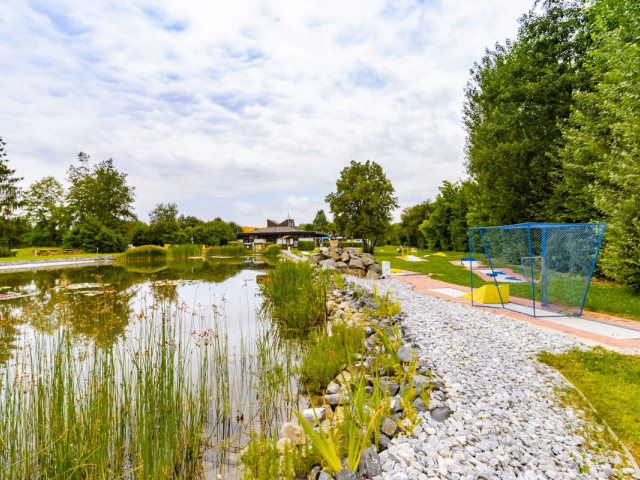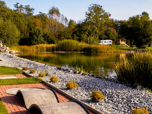 Ein besonderes Highlight des Ferienparks ist der idyllische Naturbadesee Eterna. Nehmen Sie ein erfrischendes Bad im klaren Wasser, schwimmen Sie entspannt Ihre Bahnen oder genießen Sie einfach die Ruhe am Ufer. Die Kombination aus Natur, Wasser und Stille sorgt für ein wohltuendes Urlaubserlebnis.