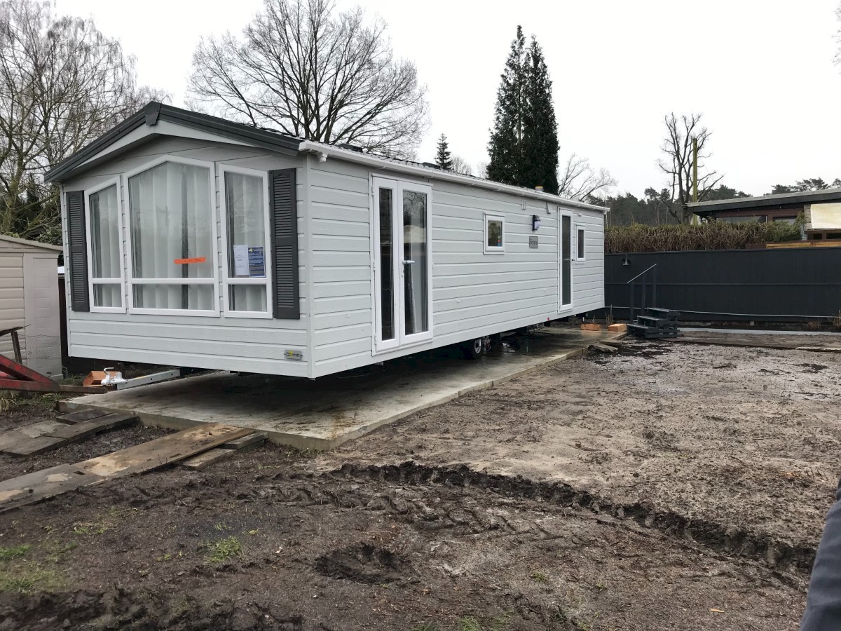 Das heute gelieferte Mobilheim (Bergline Lodge) steht,alles super gelaufen. Die Mitarbeiter perfekt