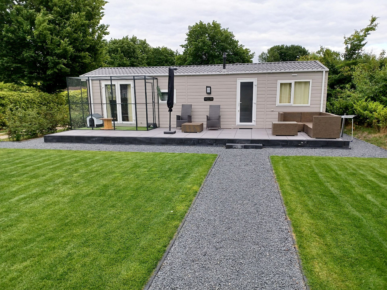 Zum Schluss haben wir noch ein Katzengehege für unsere Katze anbringen lassen, über das wir uns sehr freuen – eine schöne Ergänzung zu unserem Chalet!